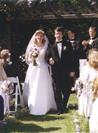 Leaving the alter. Blowing bubbles, clapping, Da da dum... |